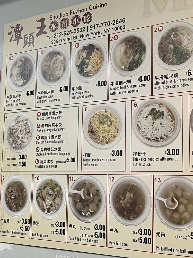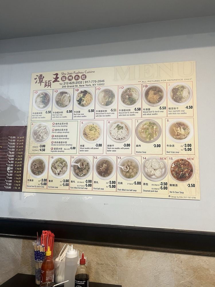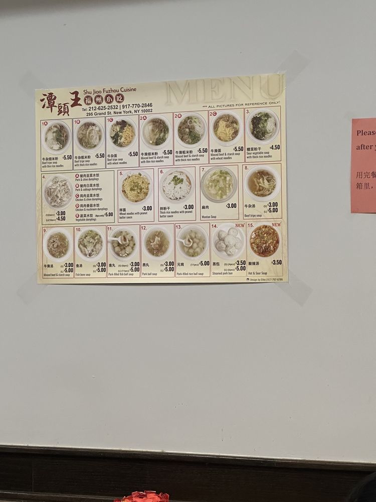 Shu Jiao Fu Zhou, a Chinese restaurant located in New York's Chinatown, offers a wide range of authentic dishes and frozen food options. Their house specials include various noodle soups, dumplings, and appetizers like the pork and chive dumplings that customers rave about. The ambiance is casual and fast-paced, perfect for a quick and delicious meal. The menu is affordable, with most dishes priced under $10, making it a great option for budget-conscious diners. Some customers recommend bringing cash as the restaurant is cash-only. Overall, Shu Jiao Fu Zhou is a hidden gem for those craving traditional Chinese cuisine in a bustling Chinatown setting.